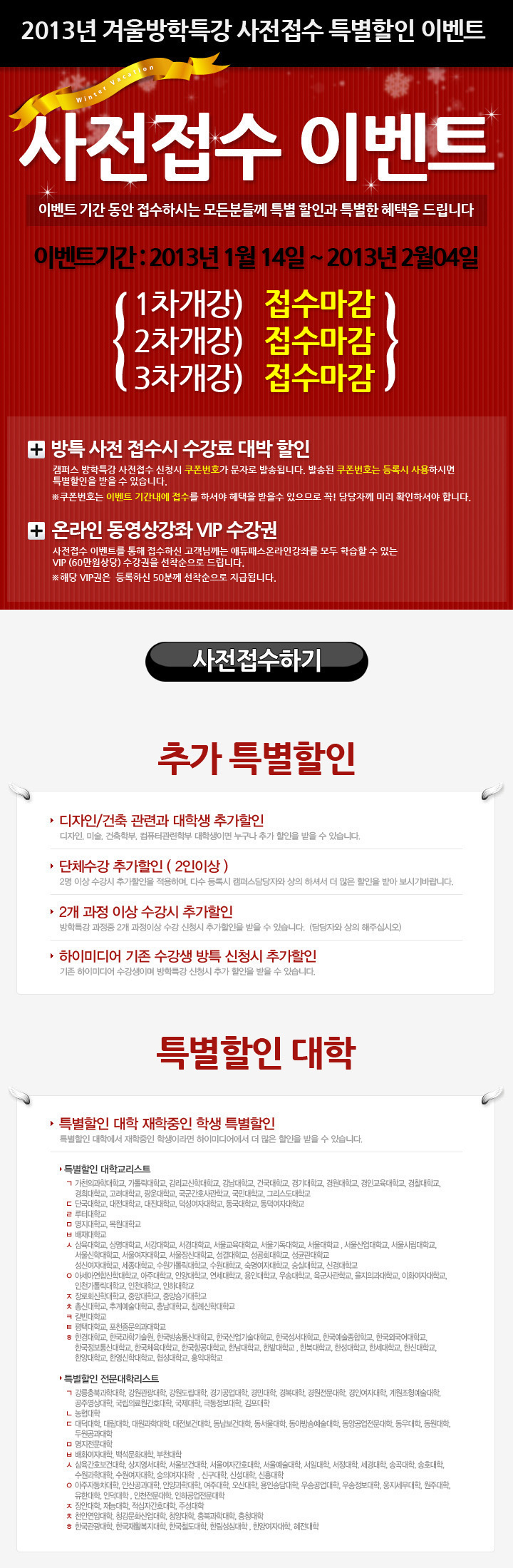 [종료] 겨울방학특강 사전접수 특별 할인이벤트